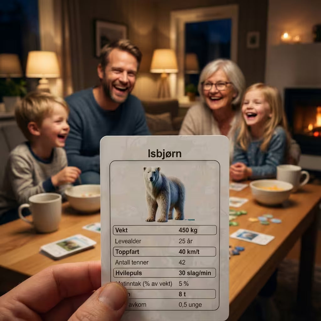 Barna sammenligner 50 ulike dyr på egenskaper som størrelse, fart og levealder. Velg kategori, spill kort – og vinn runden. Læring skjer helt naturlig, uten pugging.