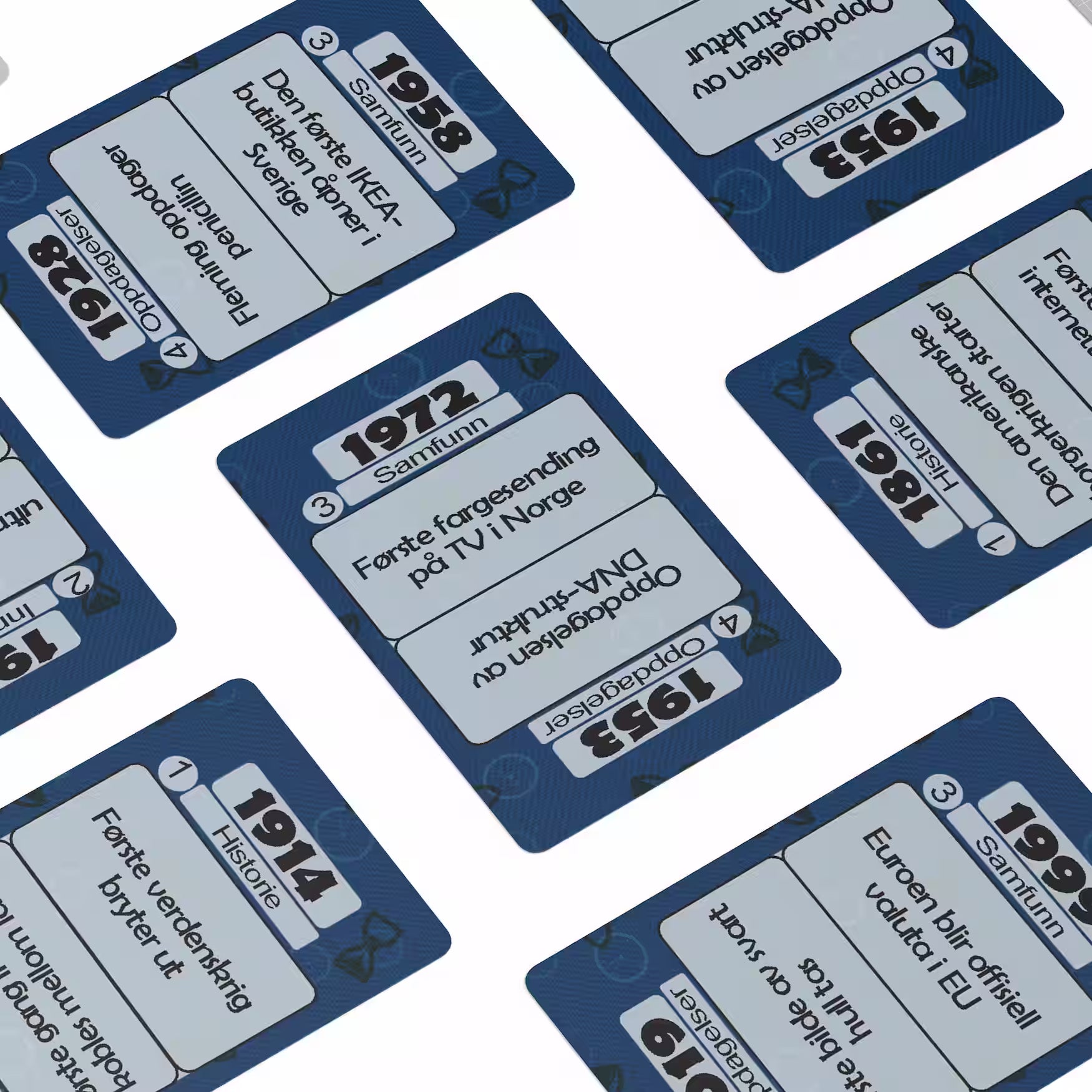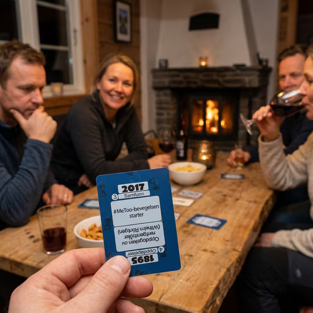 Trekk et kort. Plasser hendelsen på tidslinjen. Treffer du riktig, kan du velge: spille trygt – eller satse videre. Førstemann til 10 riktige vinner.