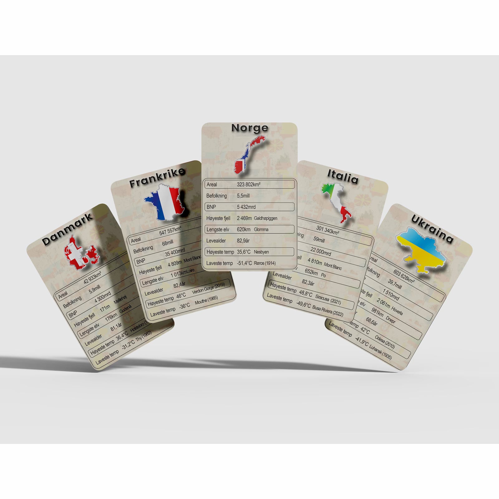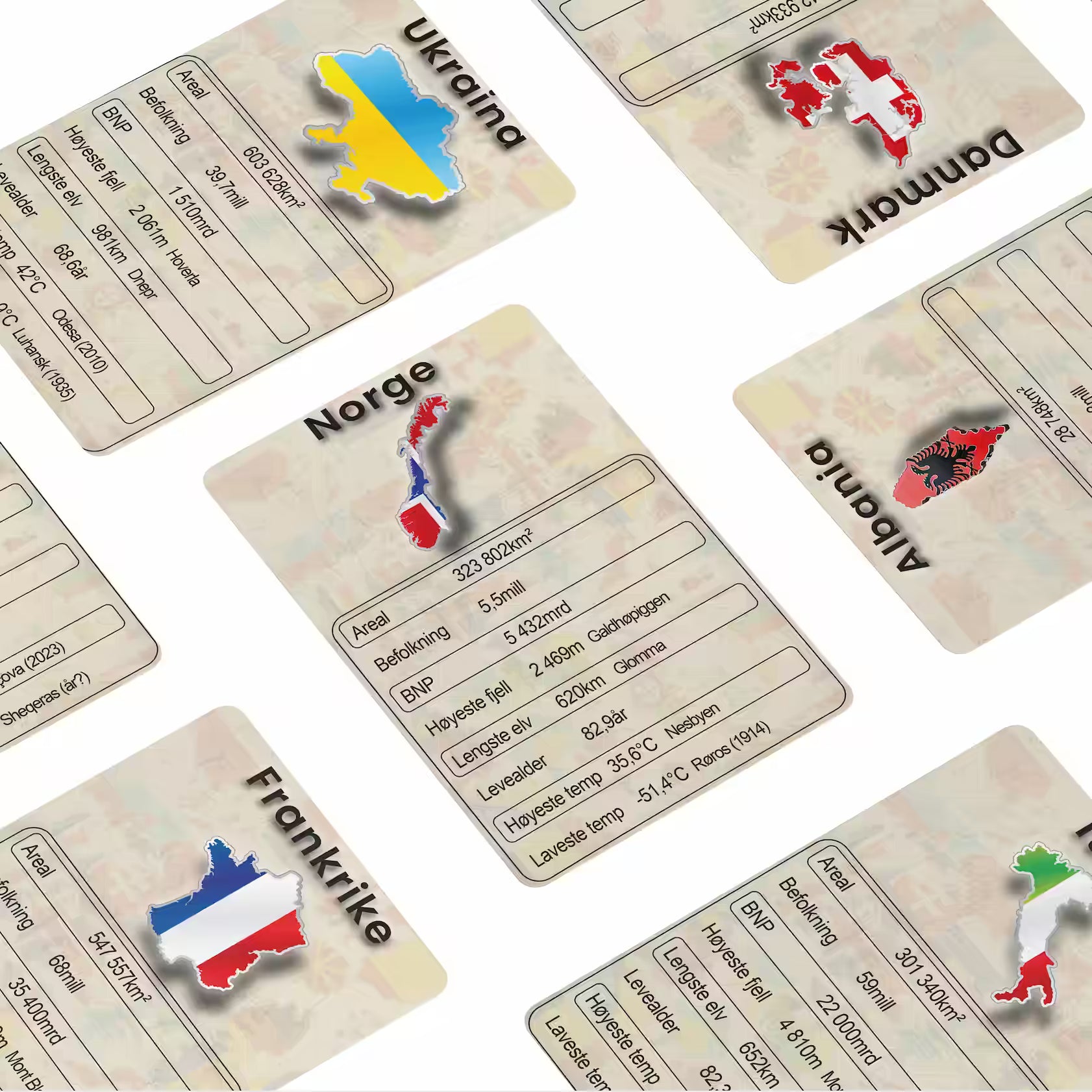 - 48 landkort med nøkkelfakta